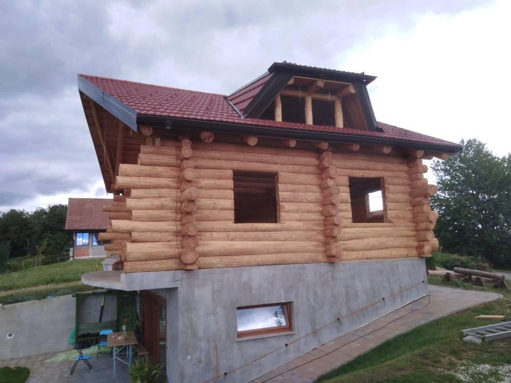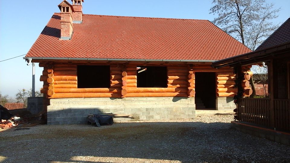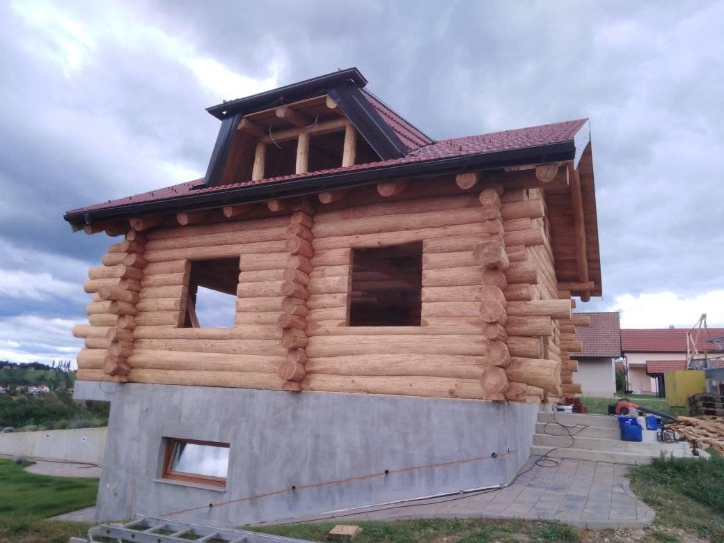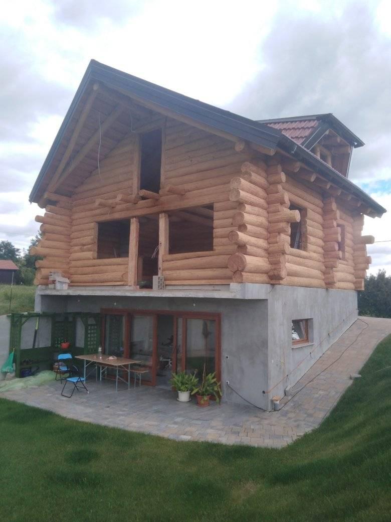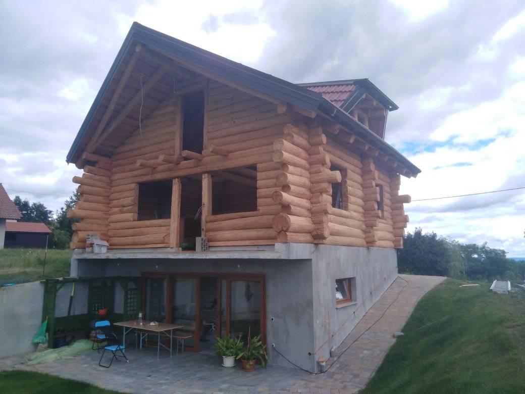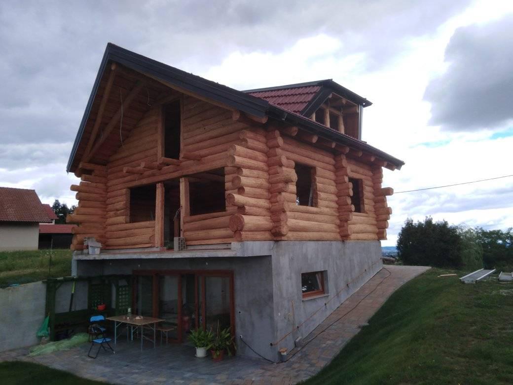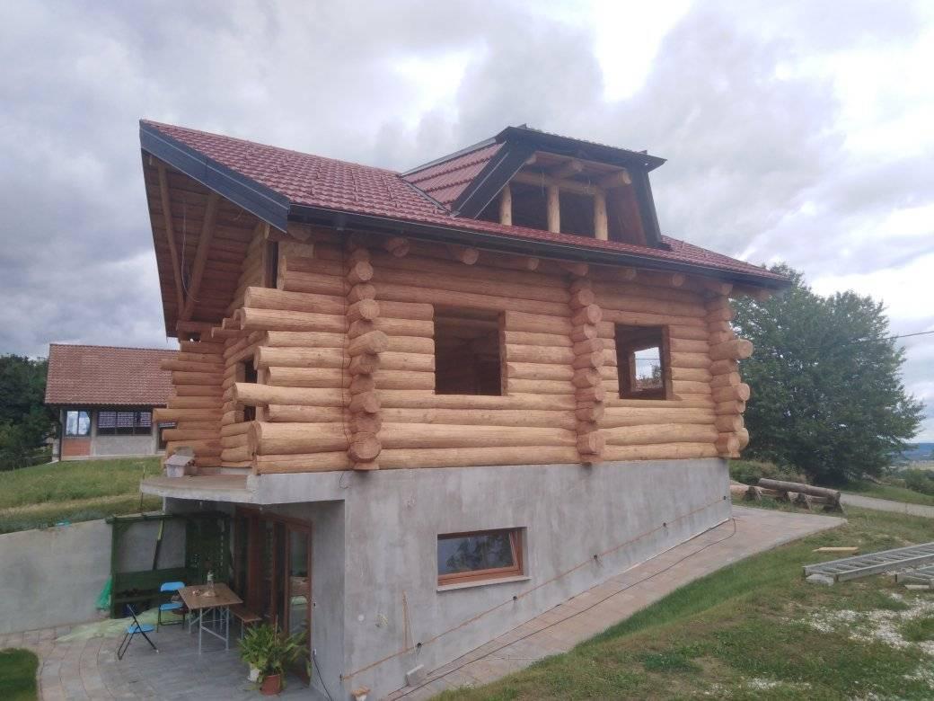 Završena montaža drvene kuće od trupaca i izgrađeno krovište. Radovi su izvođeni u Knegincu Gornjem.