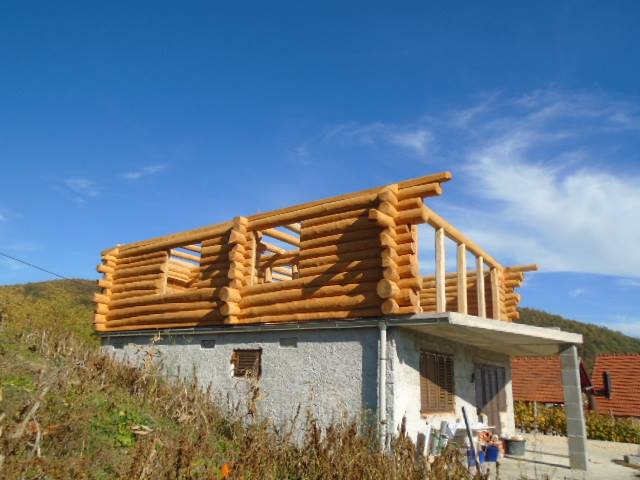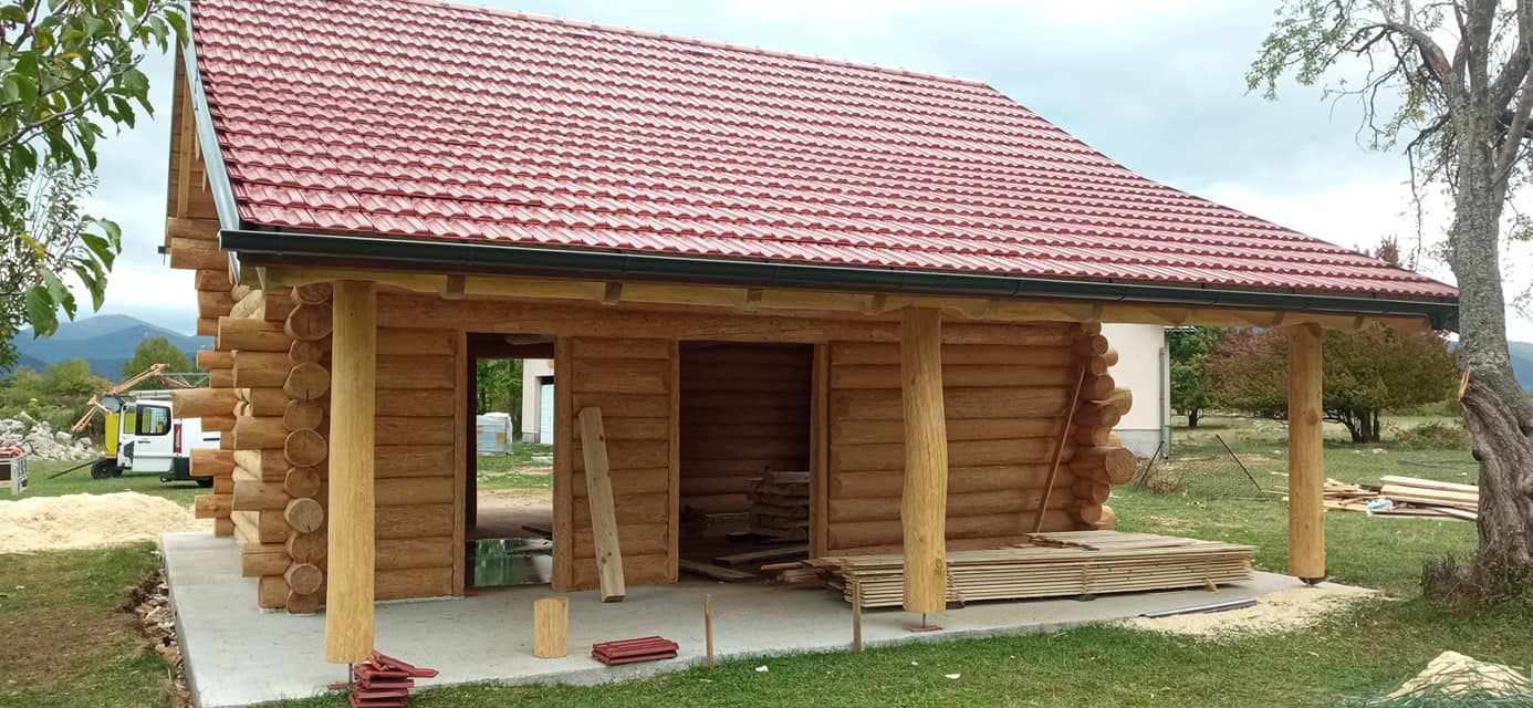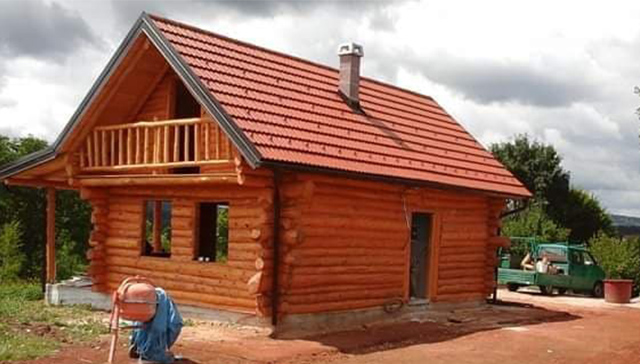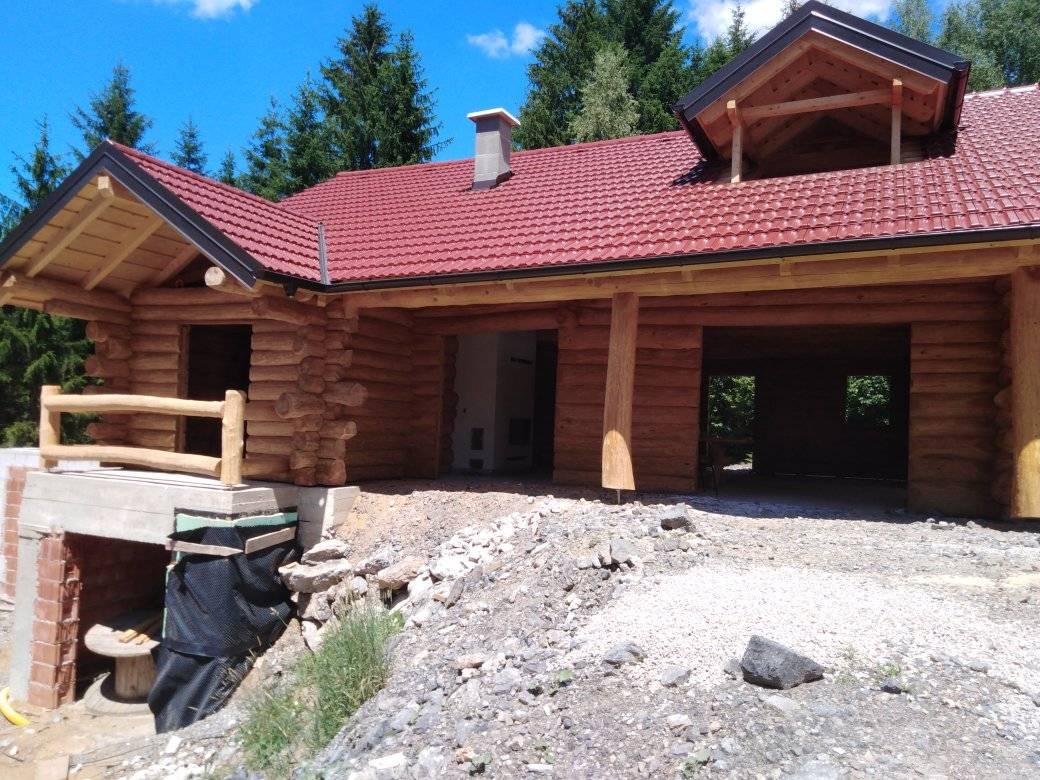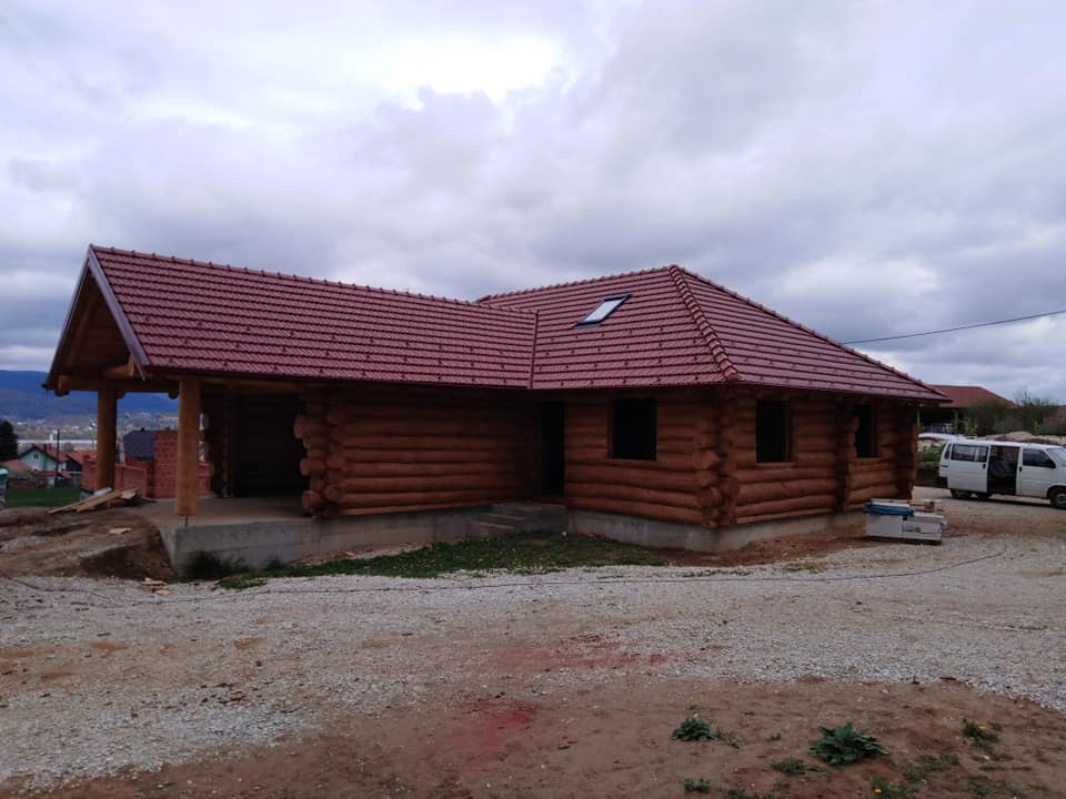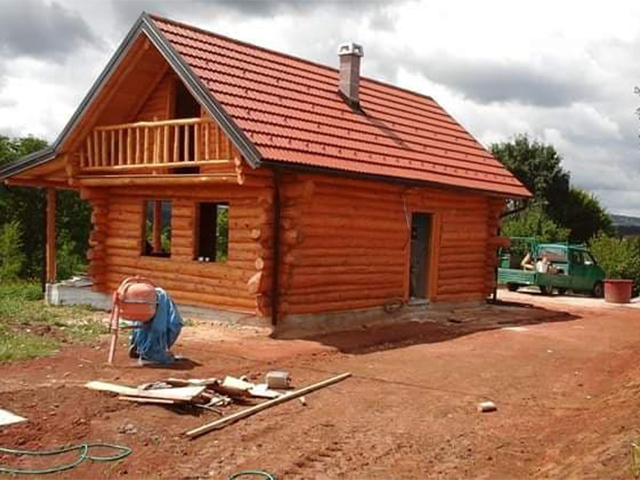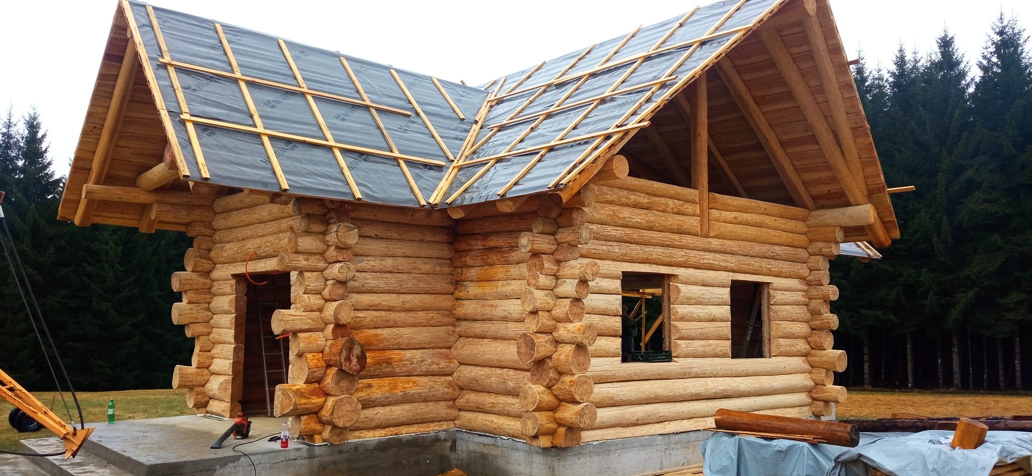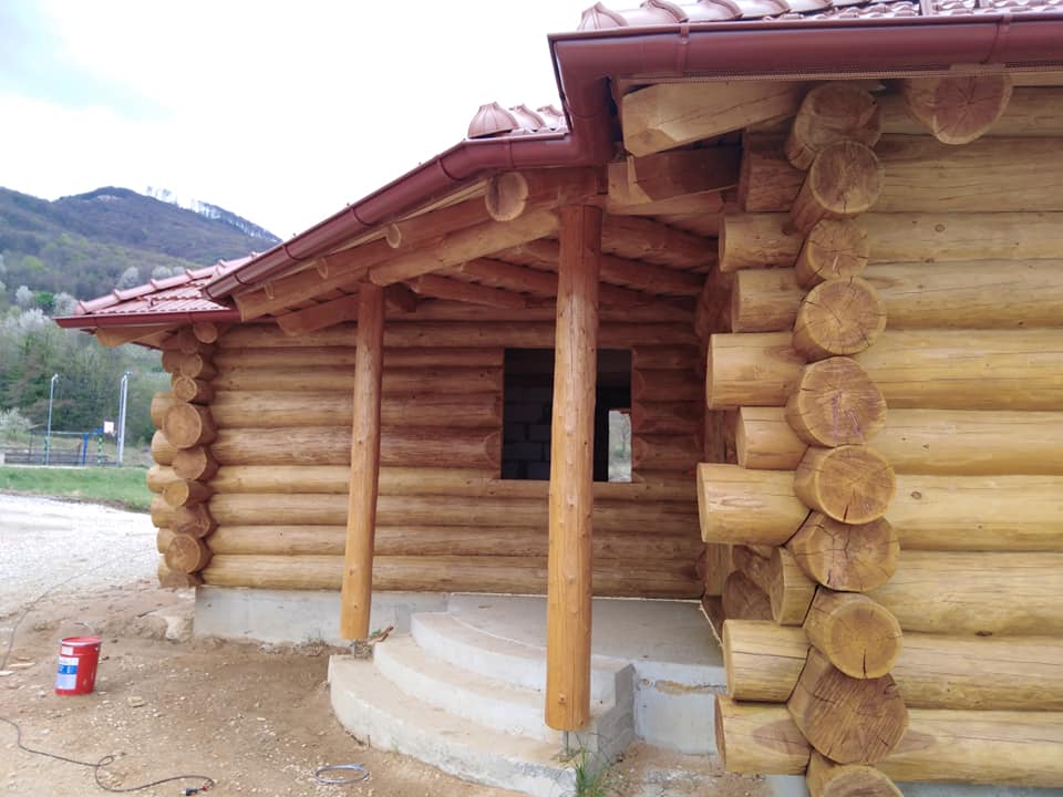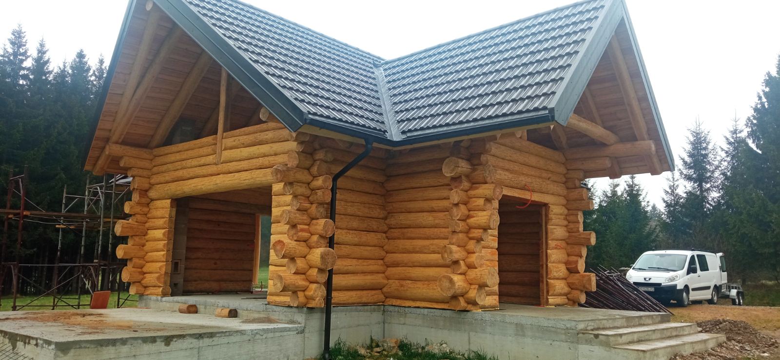 Završena montaža drvene kuće od trupaca i izgrađeno krovište. Radovi su izvođeni u Knegincu Gornjem.