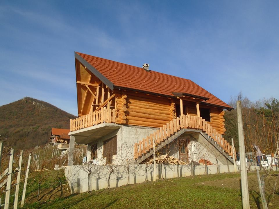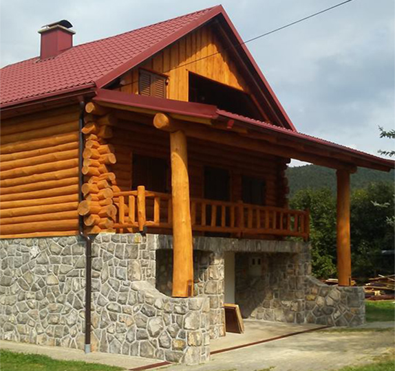 Mogućnost gradnje drvenih kuća sa izvedbom od sendvič zidova u rustikalnom tonu.