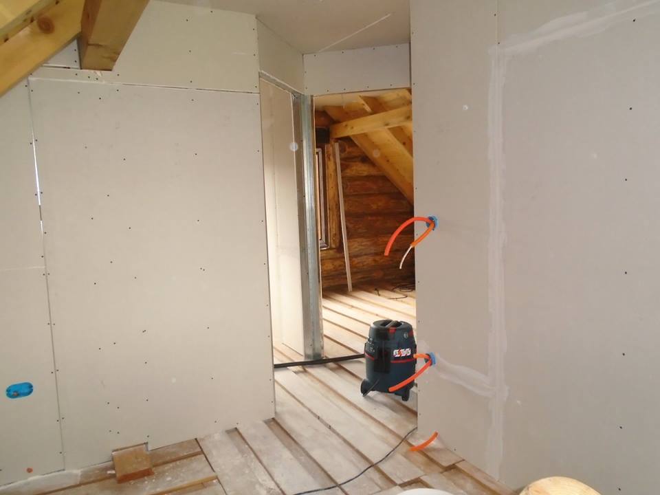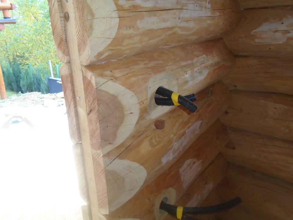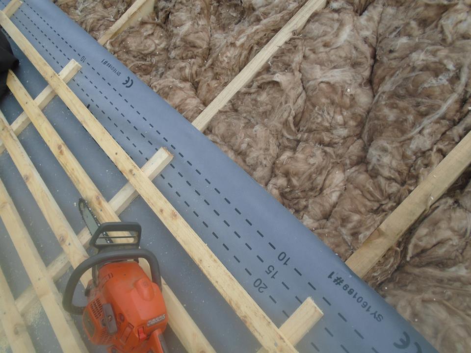 Malo fotografija oko nekih detalja kod gradnje drvene kuće, a važno je za buduće investitore. Prilikom gradnje krovišta uglavnom izvodimo potpuno završen krov u donjem pogledu u rustikalnoj izvedbi , dok na gornjem dijelu izrađujemo krov sa izolacijom - dva sloja folije i međusobna ispuna od eko mineralne vune. Tek nakon polaganja izolacije montiramo kontra letvu za zračni prostor i letvu za prihvat crijepa. Ostali detalji odnose se na pripremu otvora za montažu prozora i detalji za pripremu provođenja električnih vodova.