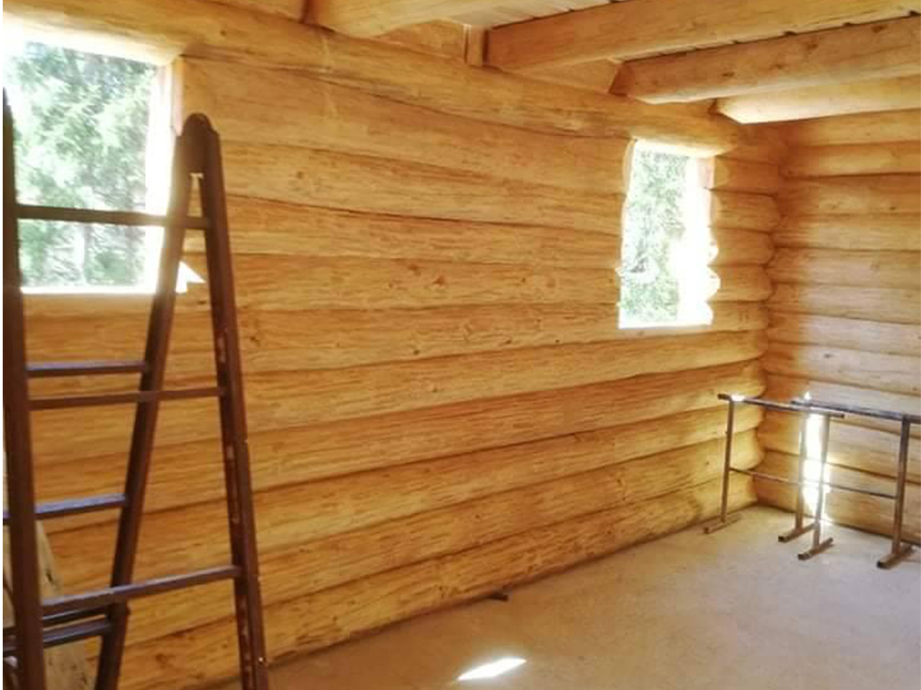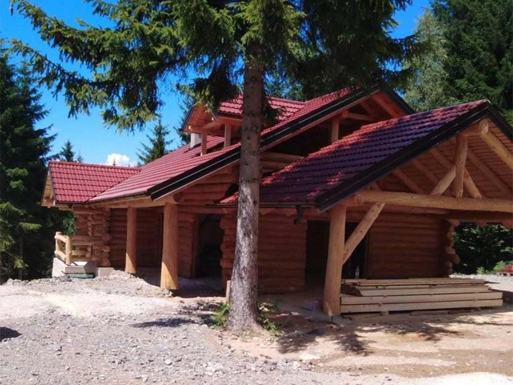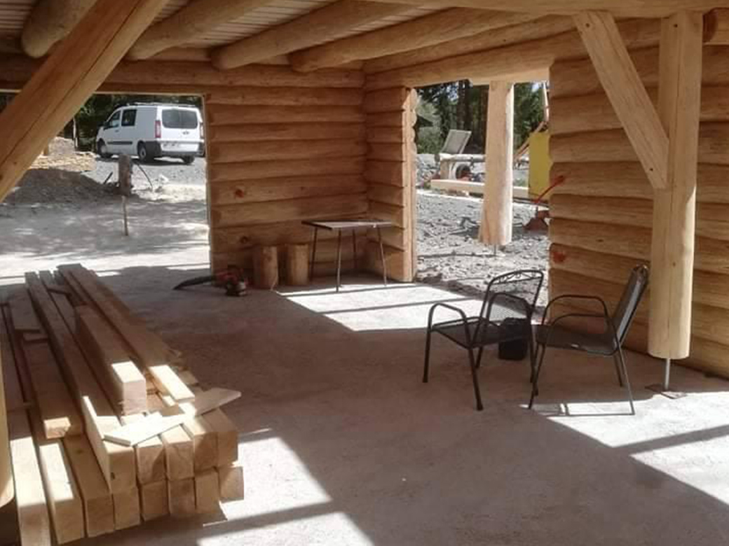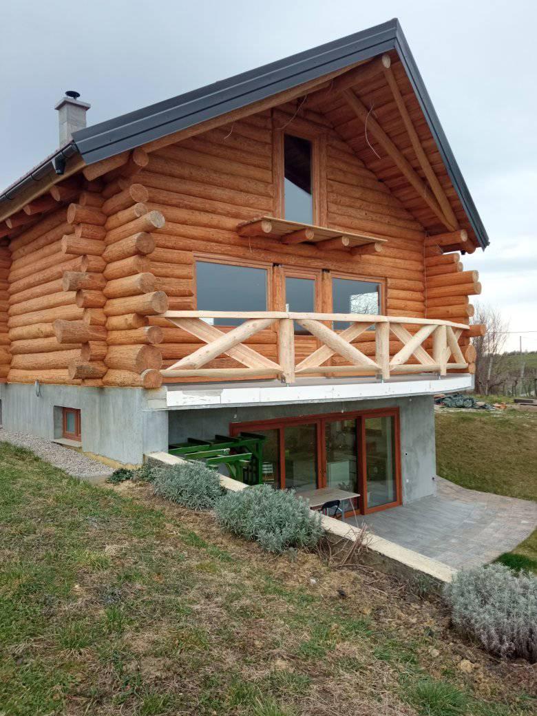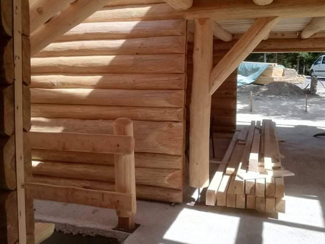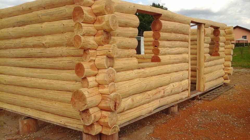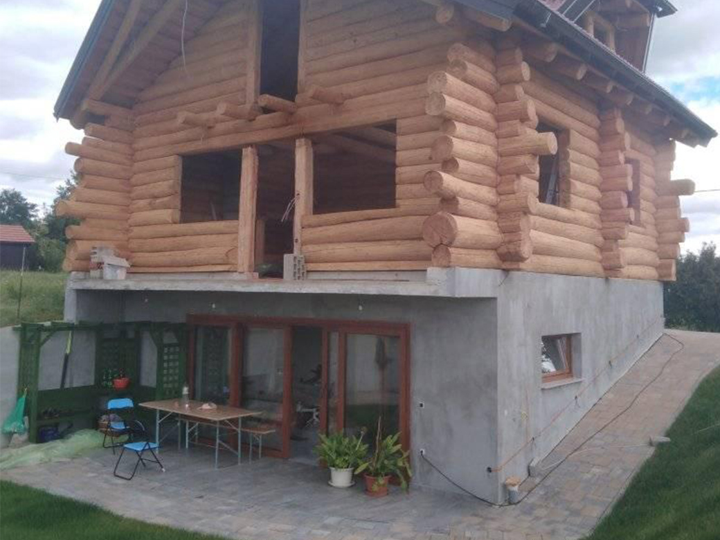 Gradnja obiteljske kuće od ručno obrađenih trupaca ariša na području Kneginca Gornjeg.