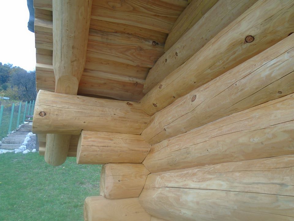 Drvena kuća kod Mađareva. Ovim putem prikazujemo mogučnost fugiranja drveta trajo elastičnim kitom. Svim vlasnicima preporučujemo da izvedu ovakve radove na svom objektu.